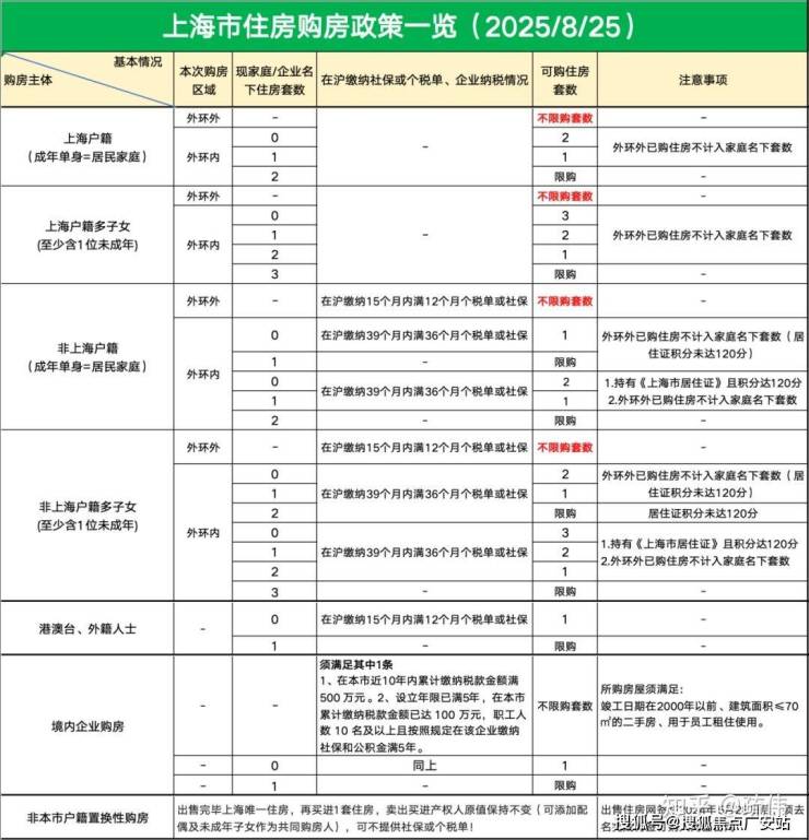 紧随其后,8月25日,上海也出台了新的房地产调控政策。对符合本市购房条件的居民家庭,包括本市户籍居民家庭及在本市连续缴纳社会保险或个人所得税满1年的非本市户籍居民家庭,在外环外购置住房(含新建商品住房和二手房)不再受限于套数。成年单身人士同样按照居民家庭标准执行限购政策。具体而言,沪籍居民家庭和成年单身人士在外环外购房不限套数,而在外环内则限购2套;非沪籍居民家庭及成年单身人士,若在购房前连续缴纳社保或个税满1年,可在外环外不限套数购房。