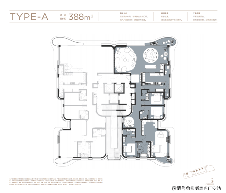 二期亮相为项目将有11栋可售住宅楼栋,共计约378套可售高层住宅,共有4种主力户型,包括建面约285/388/731㎡大平层。