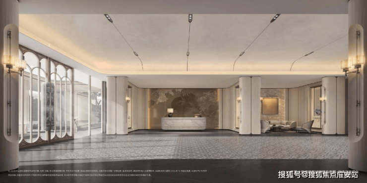 从步入社区大门开始,约70米超大尺度门庭、奢华酒店般的港湾式落客,就将仪式感便顶格拉满;星级酒店大堂,内部多处装置融合非遗技艺美学,生活在尊贵与艺术之间巧妙平衡;进入下沉式中庭花园,归家路上移步异景;单元入户入口延续奢华酒店质感,采用奢石与铝板叠加的奢华设计,碰撞法式圆润线条,仿佛艺术殿堂。
