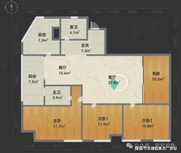 117.19平户型:精致全明—3房2厅1厨1卫1阳台
