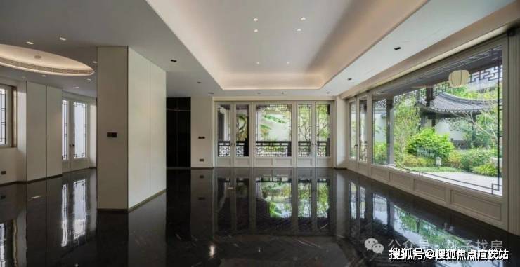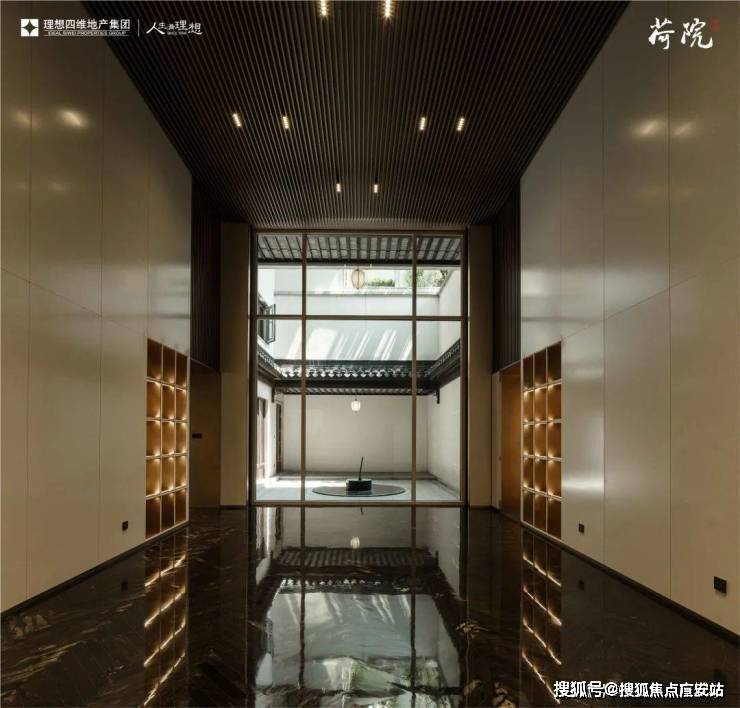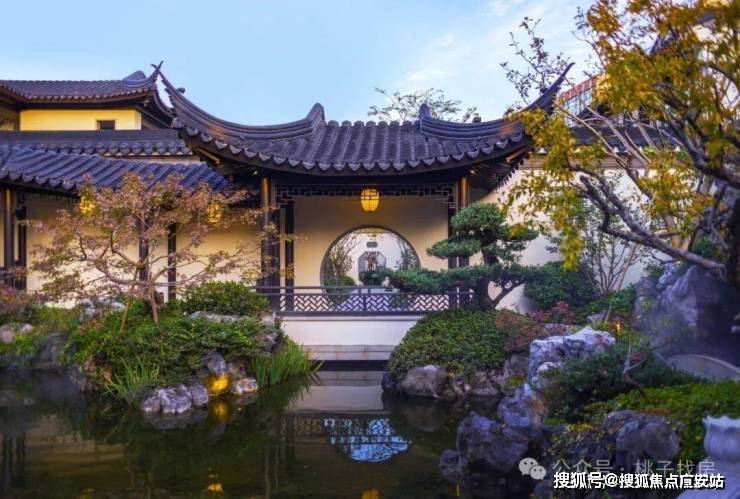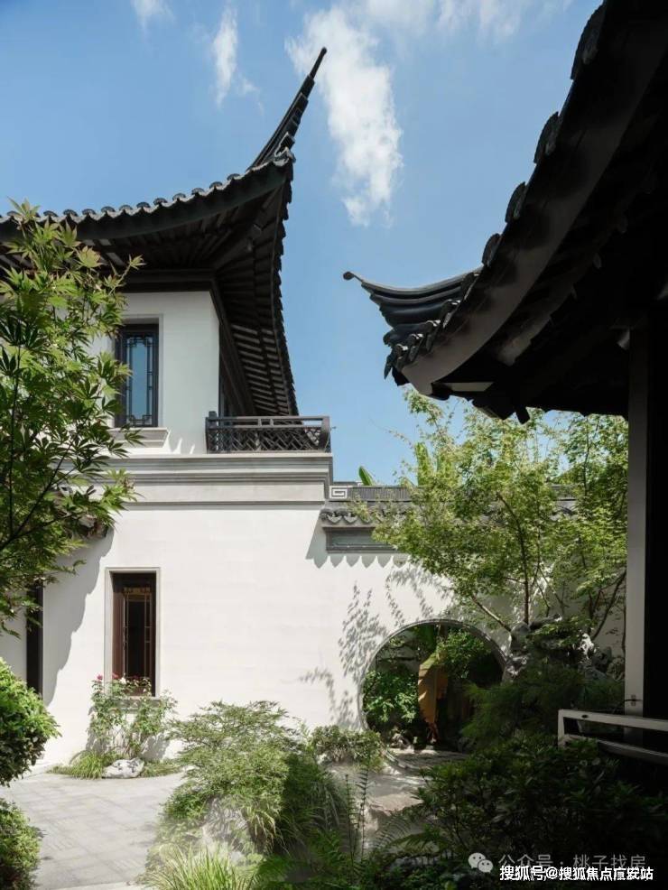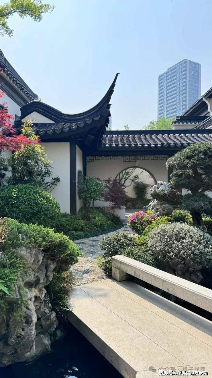 建筑风格:合院沿袭江南粉墙黛瓦风格,搭配飞檐斗拱、雕花漏窗等元素,门洞回纹造型、定制杨桃灯为专属设计,屋面瓦片还印有 “臻” 字;高层采用大面积蓝灰调玻璃,搭配灰色系质感石材与深色铝板,走现代简约美学路线。