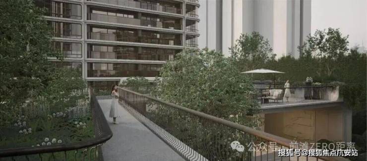 其次,双重顶级资源的加持,决定了“向上观景”的必然。项目南向直面约6公顷北外滩中央绿地,并可通过绿廊衔接约2.5公里滨江水岸线,同时无遮挡正望陆家嘴天际线。绿城精准把握这一土地特质,将社区建筑与景观层层抬升。二层空中廊道与北外滩城市连廊无缝衔接;