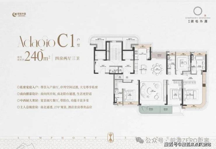 建筑面积约240㎡公园盛幕大宅,10层臻稀小高层,户型空间获得感更高,亲地舒适性更高,近揽公园与繁华天际,上海心中的恒景化作生活的慢调旋律。