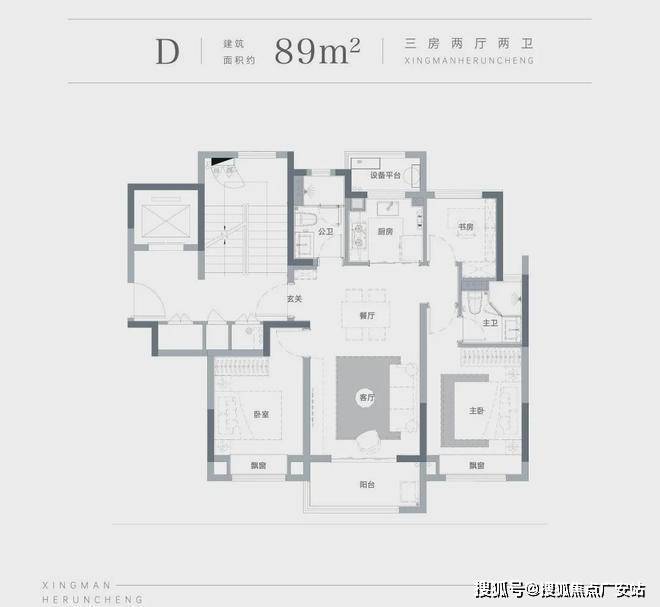 洋房89㎡户型图星缦和润城售楼处电话:400-887-5663✔✔(售楼处最新电话)
