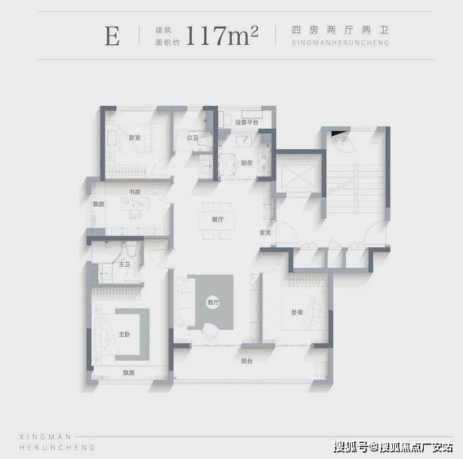 洋房117㎡户型图星缦和润城售楼处电话:400-887-5663✔✔(售楼处最新电话)