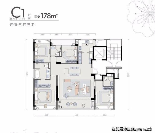 而移步至建面约178㎡的户型,一定会让你更加“痴狂”。