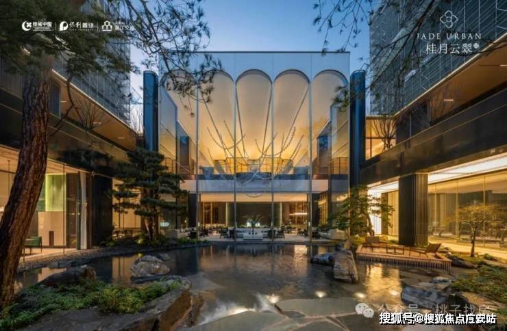 特邀近180年历史日本植弥加藤造园社共创设计,以“千里江山图”为灵感取境,巧妙运用景观高差处理手法打造下沉式庭院,围合一方大美隐于内的“泛会所空间”。