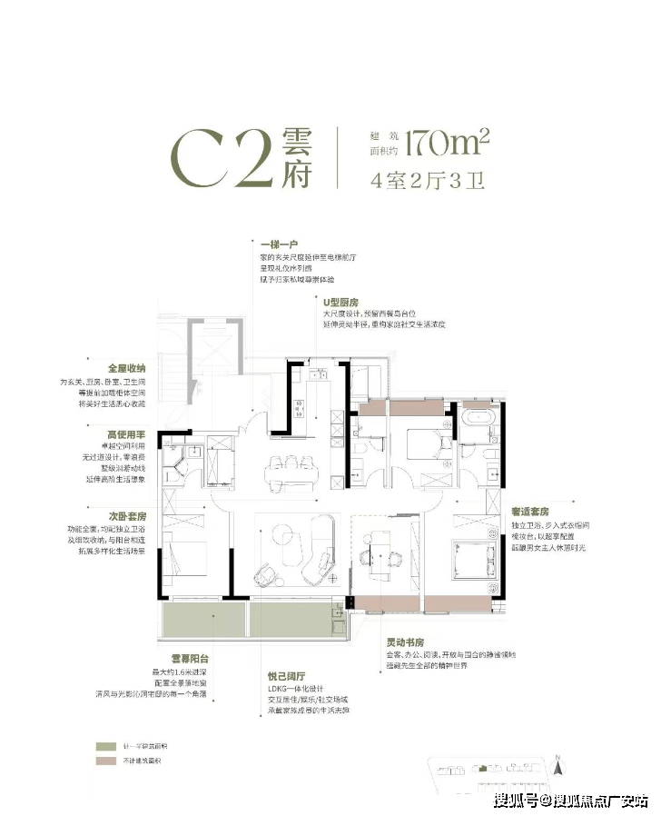 随后推出的 170㎡“悬浮全景舱”,直接引领上海高端户型革新—— 南向 15.8 米四面宽让每个空间都享阳光平权,深 U 型厨房预留西厨岛台,约8.35 米双阳台兼顾功能与情绪价值,双套房 + 270° 全景窗 + 三卫设计,更将 “新平权主义” 落到实处,让每位家庭成员都有私密空间;