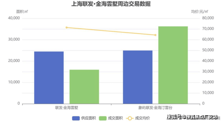 克而瑞数据显示:对比周边热销项目金海汀云台,金海云墅虽然供应量略少,但成交均价高出约7000元/㎡(建面),反映出市场对其更高产品力的认可。