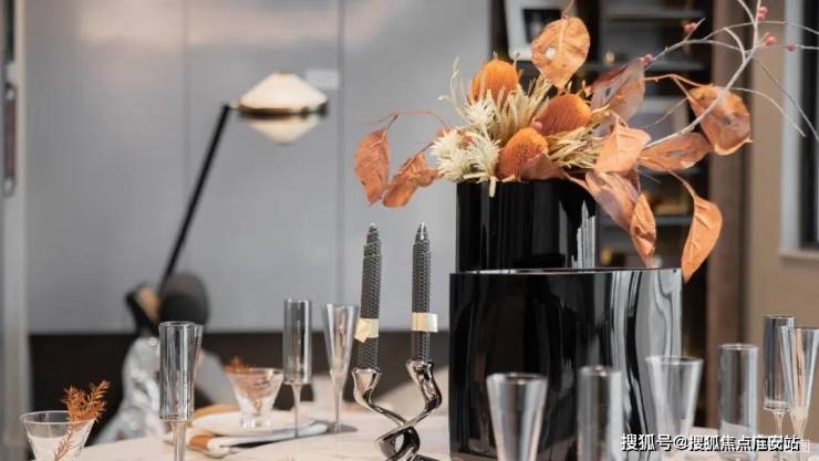 私密场域依旧保持静谧,黑白色基础上搭配了更多的色彩,例如深棕、浅紫等,艺术品的衬托深邃迷人,热络了家的氛围。