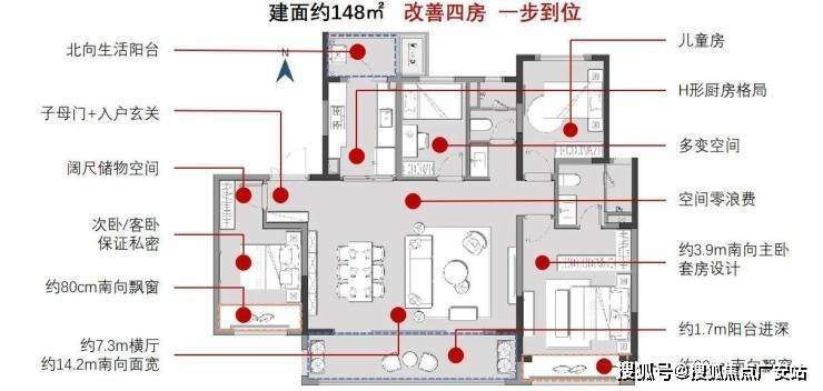 148㎡四室两厅两卫:横厅布局,5.7米景观阳台,总价约300万起