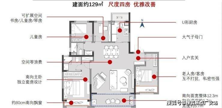 129㎡四室两厅两卫:南北通透,南向双卧飘窗,总价约260万起