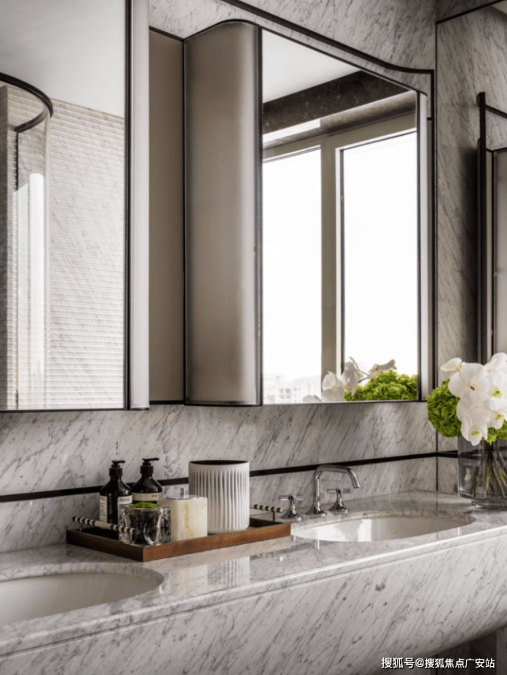 双台盆豪华主卫,带大尺度淋浴空间,同样采用了弧形设计: