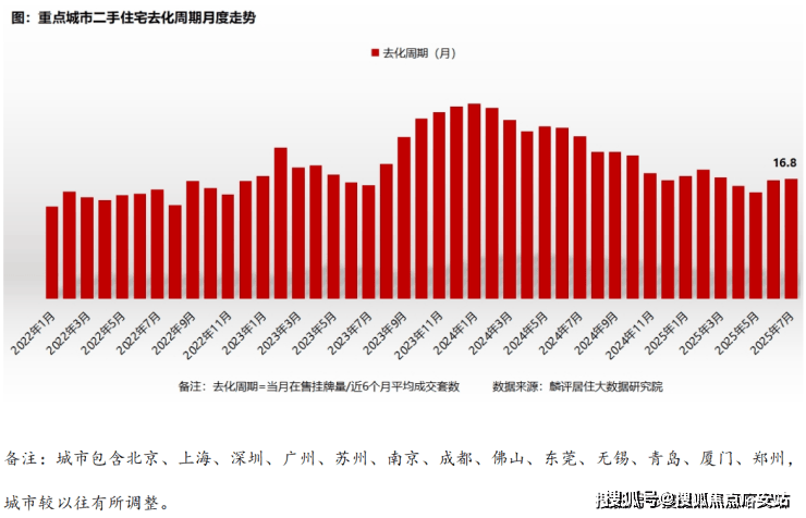 另外值得注意的是,在二手房挂牌量上升的同时,去化周期同样连续2月提升。报告显示,7月重点城市的二手房去化周期为16.8个月,环比上升2.7%,同比下降17.2%。