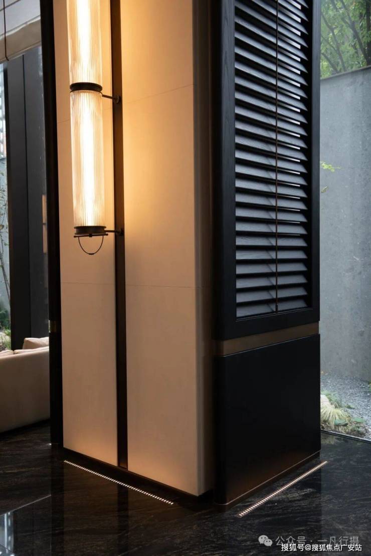 入口门廊古松相迎,倒影水中,含蓄的格栅与天井透露出隐奢意境。阳光从镂空门廊洒下,光影游走,让归家体验,从喧器到宁静实现自然过渡。