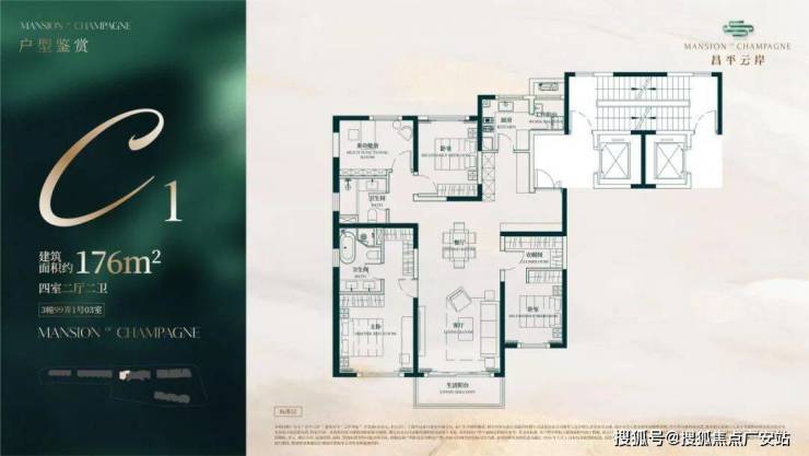 建面约176㎡4房2厅2卫户型
