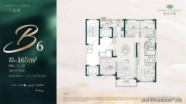 此户型最靠近苏州河,特地设计了270度转角阳台直面苏河一线景观!4个套房设计,尊崇感十足!此户型仅有6套,珍藏属性拉满!
