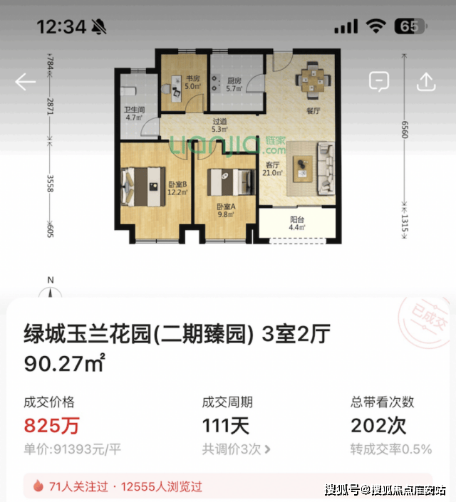 二手市场价格可期,旁边绿城二期今年成交一套90m²小户型,单价9.1万,比保利天奕前期小户型最贵单价还贵出近1万/m²!