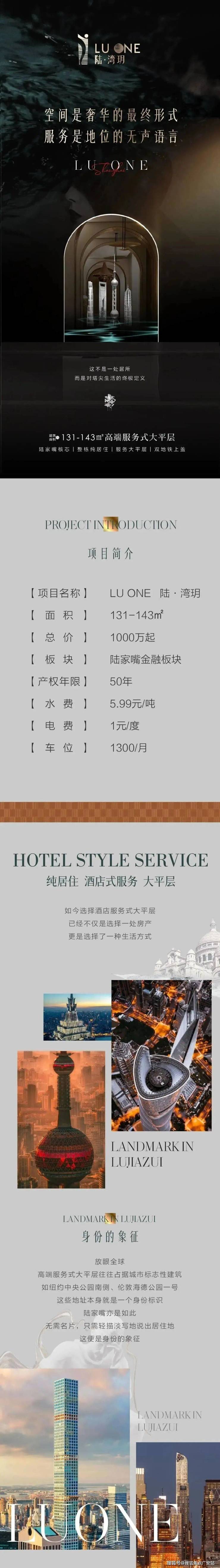 推广名:LUONE陆・湾玥(陆湾玥)备案名:永华大厦(整栋纯居住改造)开发商:上海陆家嘴(集团)有限公司(国企)位置:上海市浦东新区浦东南路2970弄(浦东南路与南码头路交叉口)板块:陆家嘴金融城核心腹地,与"陆家嘴三件套"相望产权:50年商业产权(不限购不限贷)总规模:总高26层,5梯8户设计,整栋纯居住定位(非商住混杂)总户数:约130套(推测)物业费:待定(五星级酒店式服务标准)