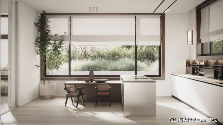 住宅中的户外绿植透过窗户呈现在眼前,令人感到自然的气息。