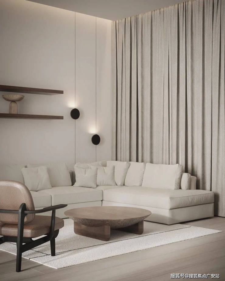 The living room is unified in color matching with furniture, with just the right design ratio, allowing the entire space to have consistency amidst changes, establishing a simple spatial atmosphere.