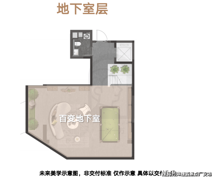 地下室百变空间,交付后可根据自身需求改造棋牌、工作室、品酒、健身空间……生活场景自由定义。