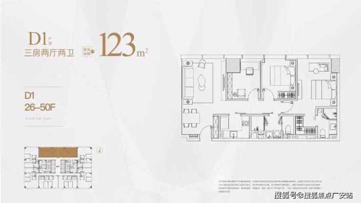 建面约123-182㎡三房,从实用三房到大平层都有👇