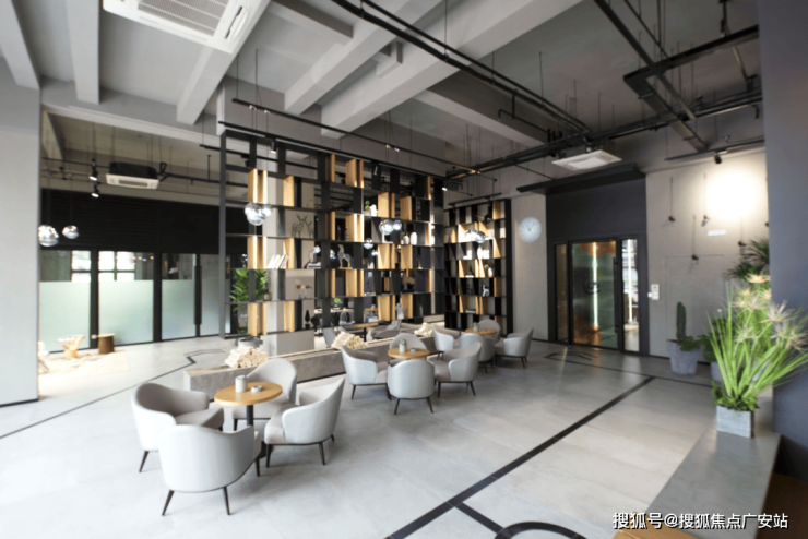 轻奢工业风大堂,书吧咖啡吧是打工人心灵休憩空间