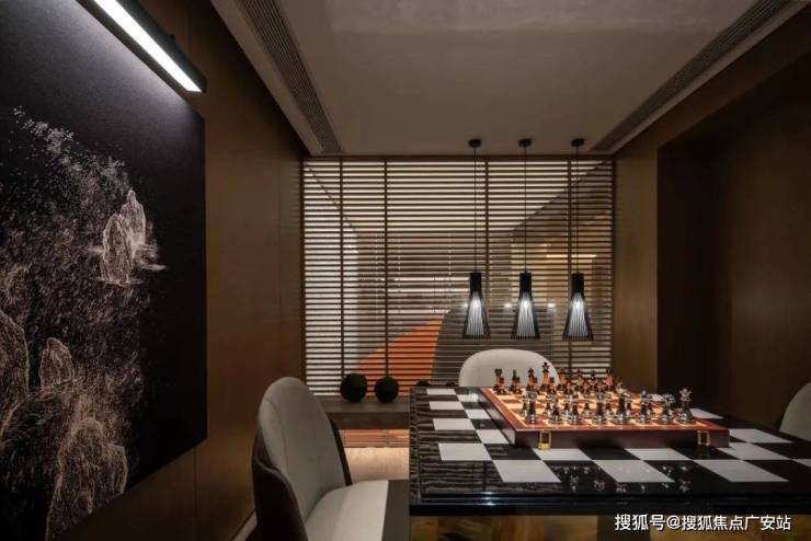 在空间设计中,景观相互映衬,各个区域的形态都是空间格局相互作用的精妙结果。在确保居住私密性的基础上,设计师注重设计的渗透力,巧妙运用百叶窗、镂空隔断等元素,使各个空间在视觉上相互穿透、层次叠加,以独特的设计手法营造出一种家的“大一统”氛围,既保证了空间的独立性,又增强了整体的连贯性。